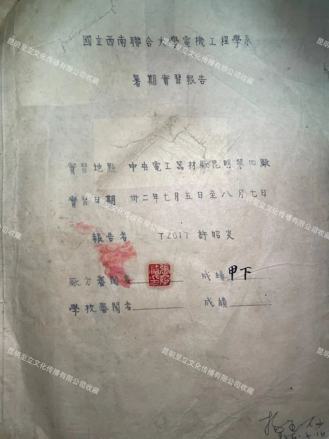 近期,一批抗戰(zhàn)時(shí)期的珍貴檔案現(xiàn)身昆明。其中,即有一份西南聯(lián)大電機(jī)工程系學(xué)子許昭炎1943年在中央電工器材廠的實(shí)習(xí)報(bào)告……