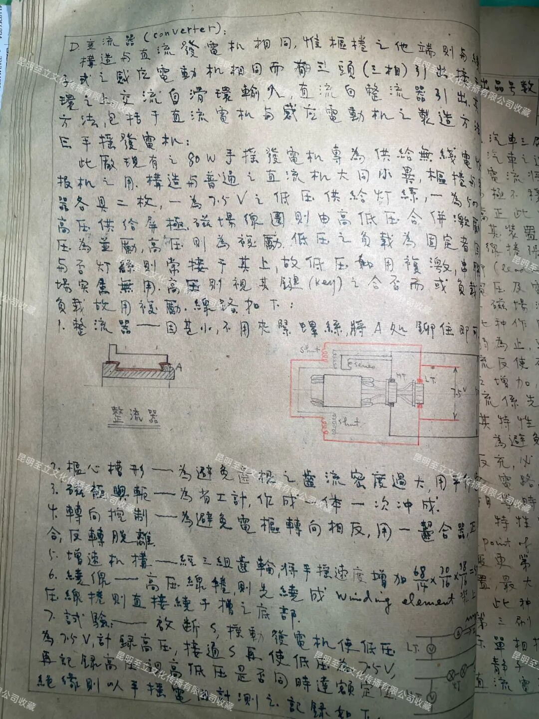 歷史意義上,它是中國知識(shí)分子“科教救國”的立體見證。在民族存亡之際,西南聯(lián)大與中央電工器材廠共同構(gòu)筑了“產(chǎn)-學(xué)-研”戰(zhàn)時(shí)協(xié)作的典范。許昭炎們不僅將書本理論轉(zhuǎn)化為機(jī)器轟鳴,更以扎實(shí)實(shí)踐支撐著抗戰(zhàn)物資的生命線。手稿中工整的電路圖與數(shù)據(jù)記錄,恰是那個(gè)時(shí)代“教育不輟、工業(yè)不熄”的精神圖騰。