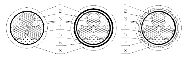 | 各種型號電纜的橫截面結構示意圖如圖1所示。 |